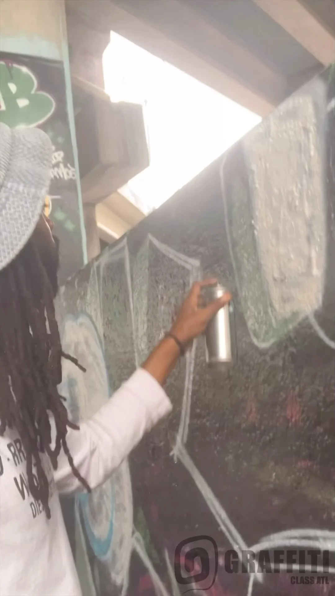 My student was an artist that has worked on his personal tag since high school. with sketch book in hand he applied knowledge and techniques he was accustomed to for his first time spraying.